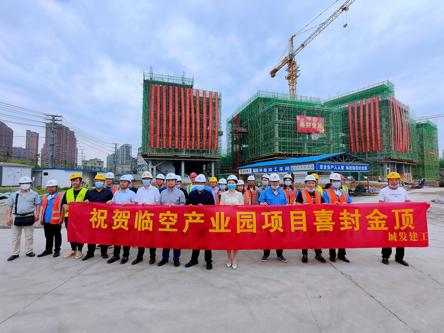 谷雨時節(jié),春意盎然。2022年4月22日上午11時18分,黃石臨空商務(wù)產(chǎn)業(yè)園獨棟企業(yè)總部項目部分樓棟封頂儀式在項目現(xiàn)場隆重舉行。城發(fā)建工集團總支委員、副總經(jīng)理洪登峰,城發(fā)建設(shè)公司副總經(jīng)理崔巍,城發(fā)置業(yè)公司副總經(jīng)理潘娟等參建各方代表出席封頂儀式,項目管理人員、工友代表等30余人參加活動。