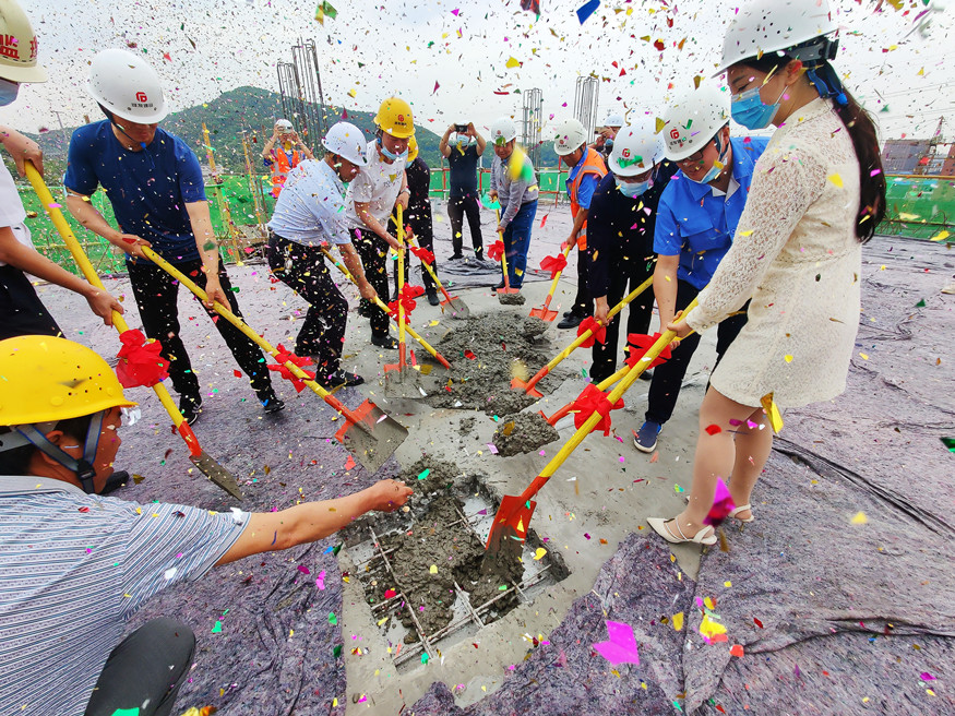 洪登峰同志致辭,他表示,6棟樓順利封頂是臨空商務(wù)產(chǎn)業(yè)園獨棟企業(yè)總部項目建設(shè)的階段性成果,也是新起點。該項目作為黃石“全域臨空”先行區(qū)一直受到市委市政府、黃石港區(qū)政府以及城發(fā)集團的高度重視。在城發(fā)集團的堅強領(lǐng)導(dǎo)下,建工集團發(fā)揚“不畏艱險、攻堅克難”的鐵軍精神,以“拼搶實”的精氣神,鼓足干勁、真抓實干,保安全、抓質(zhì)量、促生產(chǎn)、重品質(zhì),不斷優(yōu)化服務(wù)管理水平,平穩(wěn)有序推進項目建設(shè),為黃石市經(jīng)濟高質(zhì)量發(fā)展作出積極貢獻。
