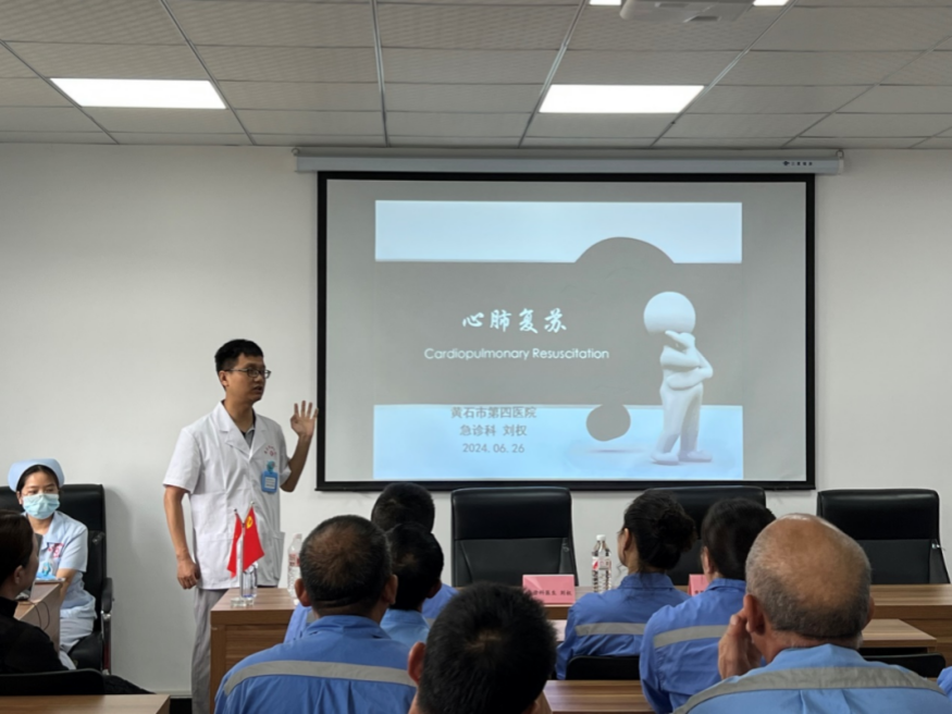 隨后,黃石市第四醫(yī)院急診科醫(yī)生劉權(quán)通過理論講解、示范操作、互動交流和現(xiàn)場演練等方式,系統(tǒng)講授了如何實施心肺復(fù)蘇術(shù),對確認(rèn)現(xiàn)場環(huán)境、判斷意識、呼救求助、胸外按壓、開放氣道、人工呼吸、重新評價生命指證等環(huán)節(jié)一一進(jìn)行詳細(xì)講解和演示,并與大家積極互動,幫助參訓(xùn)人員在實際操作中感受了整個急救過程,較好地掌握了心肺復(fù)蘇法的操作技能,現(xiàn)場氣氛熱烈,培訓(xùn)效果很好。