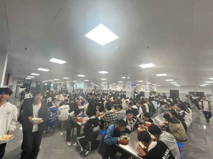 “食堂不僅環(huán)境好,菜品種類比以前豐富太多,還特別注重營養(yǎng)搭配,我們家長也更放心了?!?前來陪餐的家長王女士說道。值得一提的是,食堂與風(fēng)雨操場建筑全程秉持綠色環(huán)保理念,屋頂鋪設(shè)的光伏板與室內(nèi)節(jié)能燈具相得益彰,生動踐行了低碳校園建設(shè)目標。
